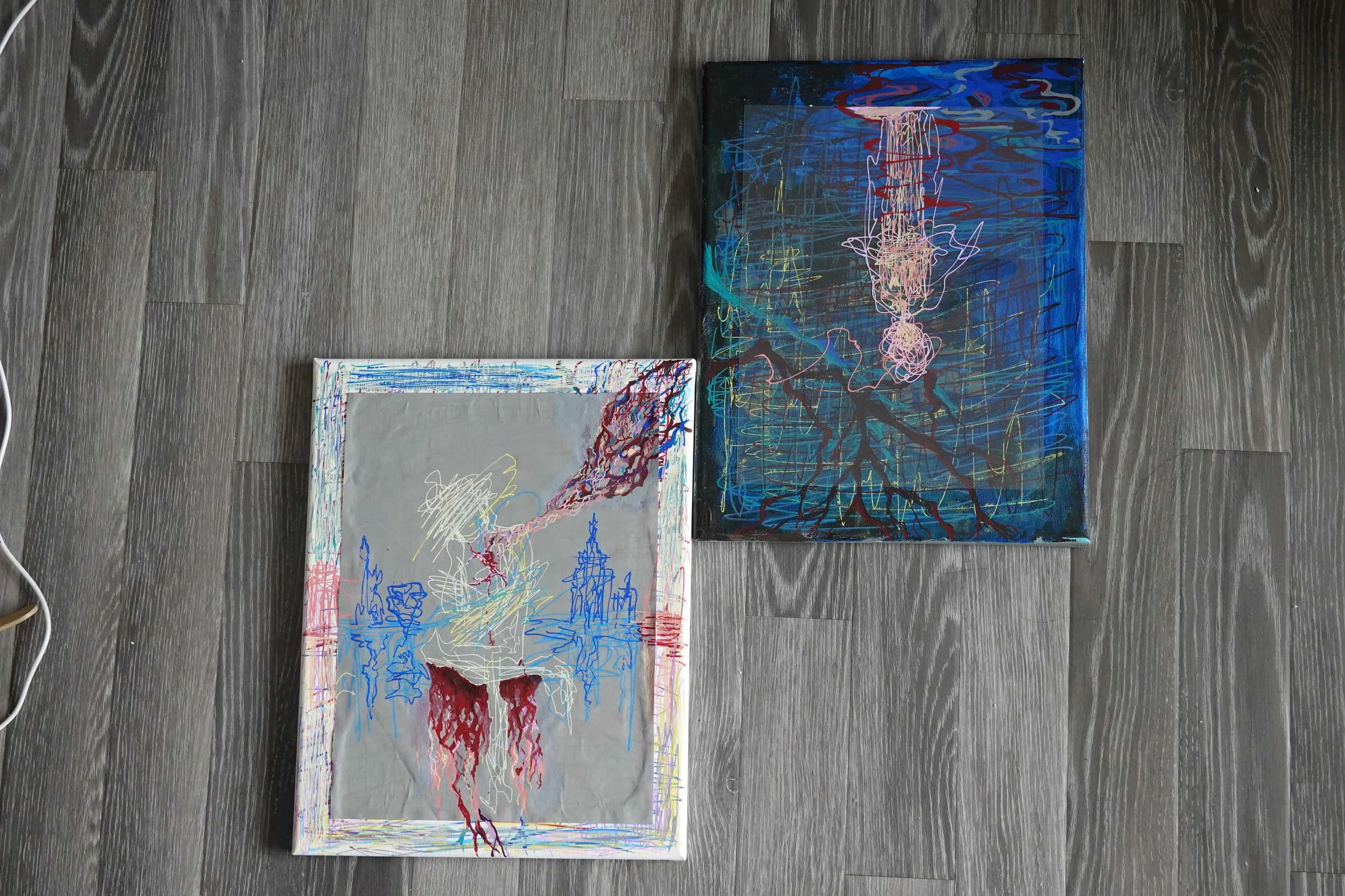 My lines symbolize not only the blood vessels, the branches, the flow of water, but also the invisible connections: the connection between man and the city, between man and his own experience, even between man and the possibilities of the future. From deep in pain to finding a way out, it is not only a psychological and physical struggle, but also a self-transcendent exploration. I hope the audience can feel the tension between their own predicament and hope through the work, find their own "clues", and explore the connection and redemption that still exist under the pain.